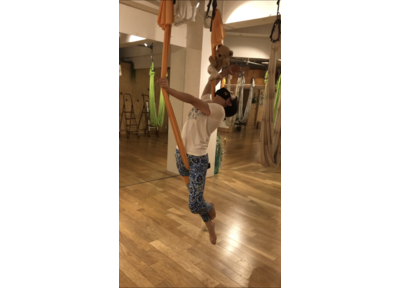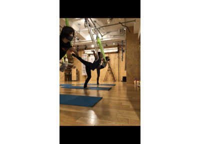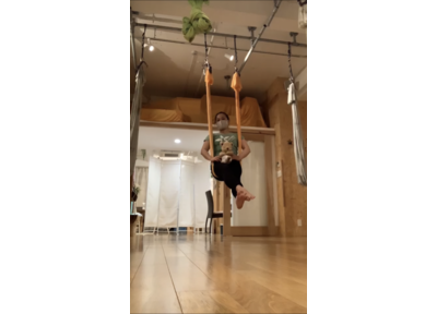 千歳烏山のジムの空中ヨガで身体が調ってくると、重力に体を預けて伸びる気持ち良さだけでなく手足で大地を押して自分自身で伸ばす気持ち良さも体感できます。